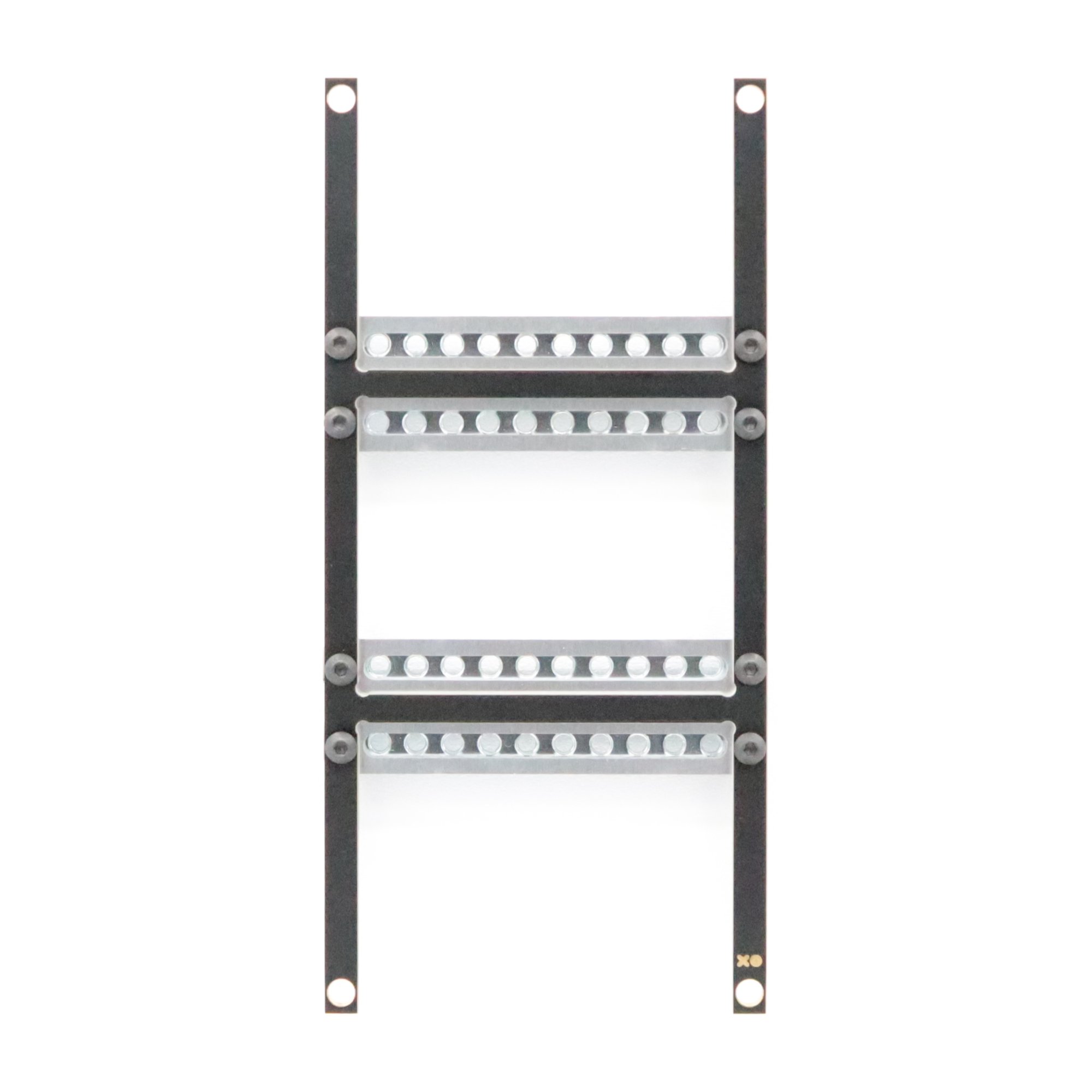 The frame is held by 4 screws in the corners, making the top and bottom modules using the original rack rails, and the integrated rails allow combining multiple 1U modules on a single row.